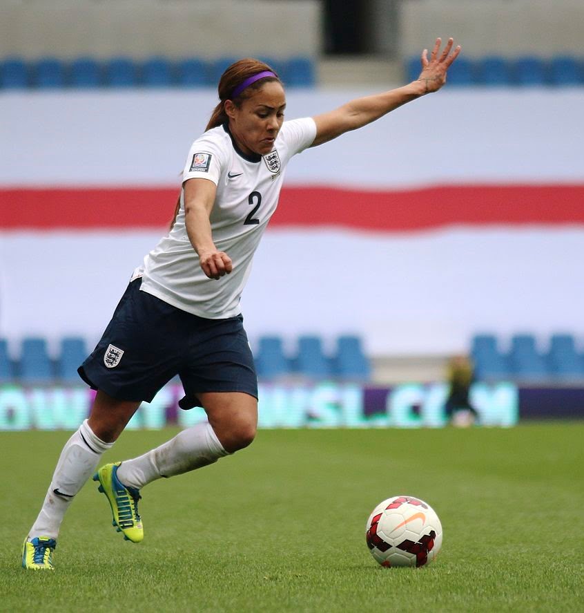 Alex Scott, born 1984 in Poplar in East London of Irish and Jamaican background, is the 2nd most capped England player of all time with 140 appearances and writes a weekly women’s football column in the communist Morning Star newspaper. She has played mainly for Arsenal women’s teams with over 150 appearances.