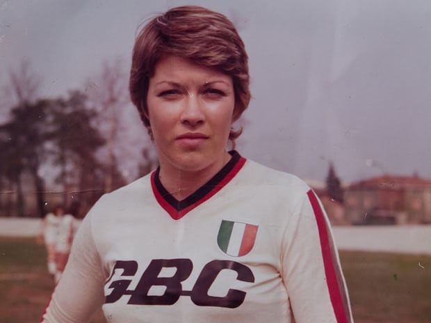 As a teen she won the Scottish Cup, played in Scotland’s first official game against England in 1972 then was set up for a trial with the women’s team of the then French giants Stade de Reims. Within a year she had been poached by AC Milan where she won two Serie A titles with before playing for nine Italian clubs over 20 years, winning eight Scudetti and four Italian Cups. She won the Italian women’s Golden Boot in 1978, scoring 43 goals for Catania, and again in 1981, hitting 45 for Lecce. In 1980, she played for both old club Reims, who flew her in to play for them on Sunday evenings, and Lecce on Saturdays, winning two championships that year, one in France and one in Italy.