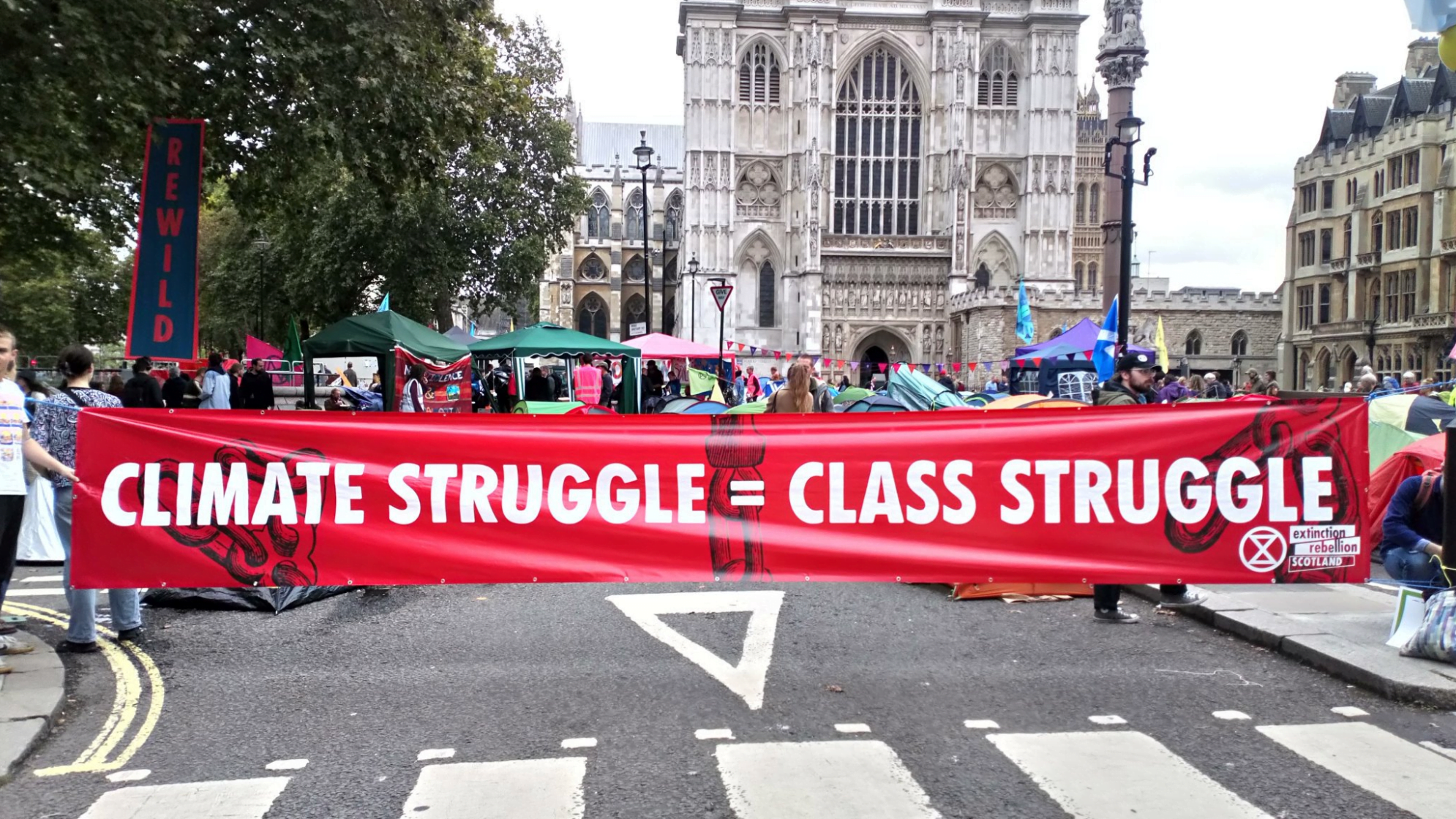 In the run-up to the October International Rebellion, members of XR Scotland chose to highlight these issues, and to respond to the concerns of women of colour in our group being dismissed by key figures in XR UK, by creating banners reading ‘DECOLONISE XR’ and ‘CLIMATE STRUGGLE = CLASS STRUGGLE’. Many people, and other groups in XR such as Extinction Rebellion Youth, Global Justice Rebellion and XR Internationalist Solidarity Network, applauded these banners. Others in XR UK questioned this ‘messaging’.