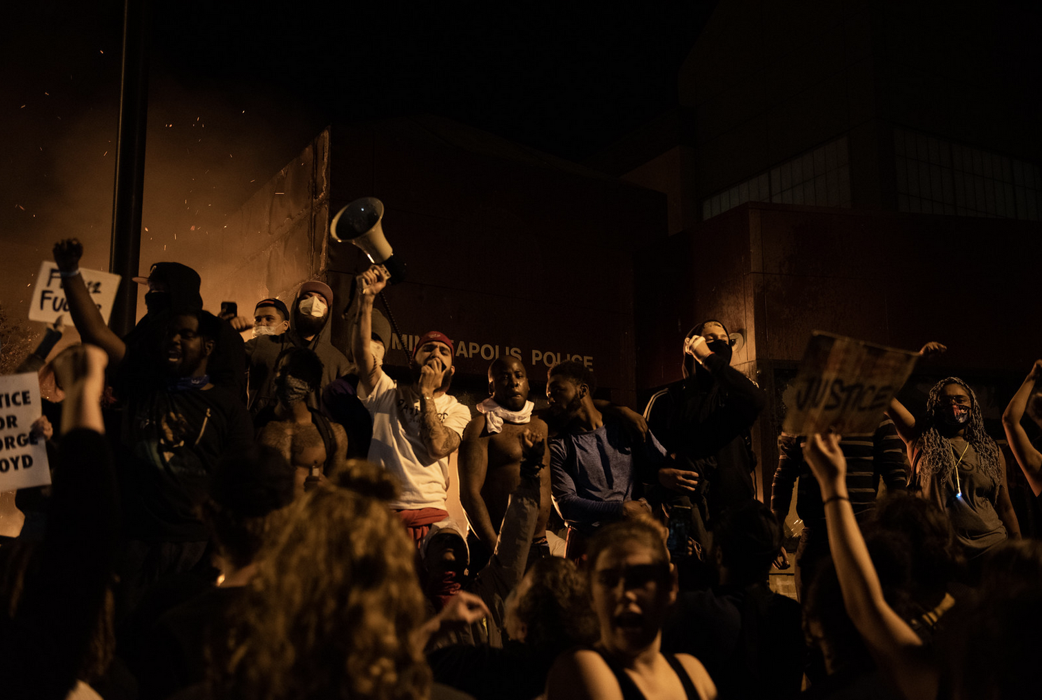 A: The day after George Floyd was murdered by police, protesters from the community descended on the 3rd precinct, carrying with them all the rage and hopelessness from protesting past police murders. The protesters smashed police cars as police retreated, throwing blast ball grenades and firing less-lethal munitions into the rapidly advancing crowd.