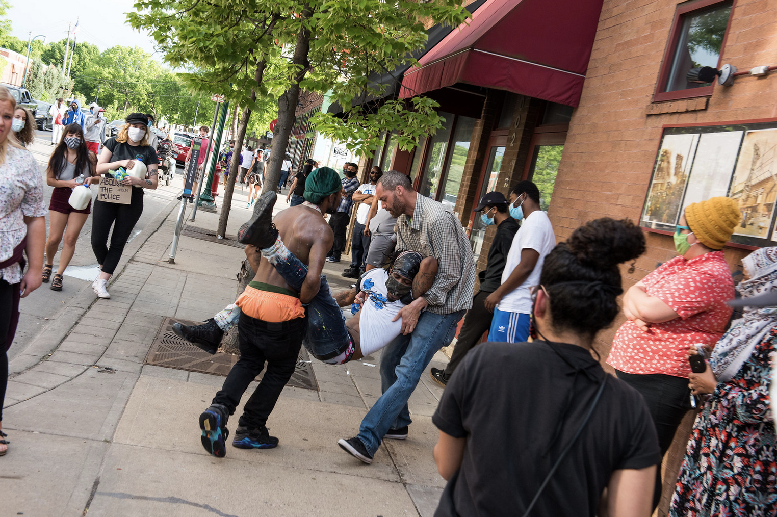 Medics and other volunteers carried the wounded to nearby vehicles, which quickly drove to the hospital, while others began looting nearby stores and setting fires to buildings. This diminished the strength of the police force protecting the 3rd precinct in that they had to quickly redirect multiple riot squads to escort the fire department to fires across the city.