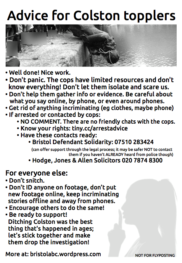 For obvious reasons, Freedom will not be reproducing the images of people with whom Avon and Somerset Police wish to speak to in relation to the events of 7th June. However, Bristol Anarchist Black Cross has come up with a message to them. We reproduce it below.