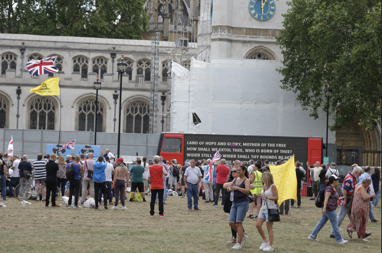 The far-right have been forced on to the back foot somewhat by the huge explosion of anti-racist mobilising around Black Lives Matter. They haven’t known how to respond to it and nothing has really worked for them. BLM is hard for them to oppose without coming out as overt racists. Tommy Robinson called on his supporters to turn out against BLM but then today Hearts of Oak tried to use the slogan “Black and White Unite”. June 13th was a show of force but also an embarrassment for them. Today has probably not improved matters. However, we must not forget the overall political climate is far more in their favour than ours – Brexit is happening, with no deal still a possibility and we have an extremely right-wing government of hardcore Brexiters, who have borrowed pages out of the Trump playbook and tried to out-Farage Farage to get where they are. When the sunlit uplands of Boris promised do not appear and a new wave of austerity hits where will the angry Leavers look for answers?