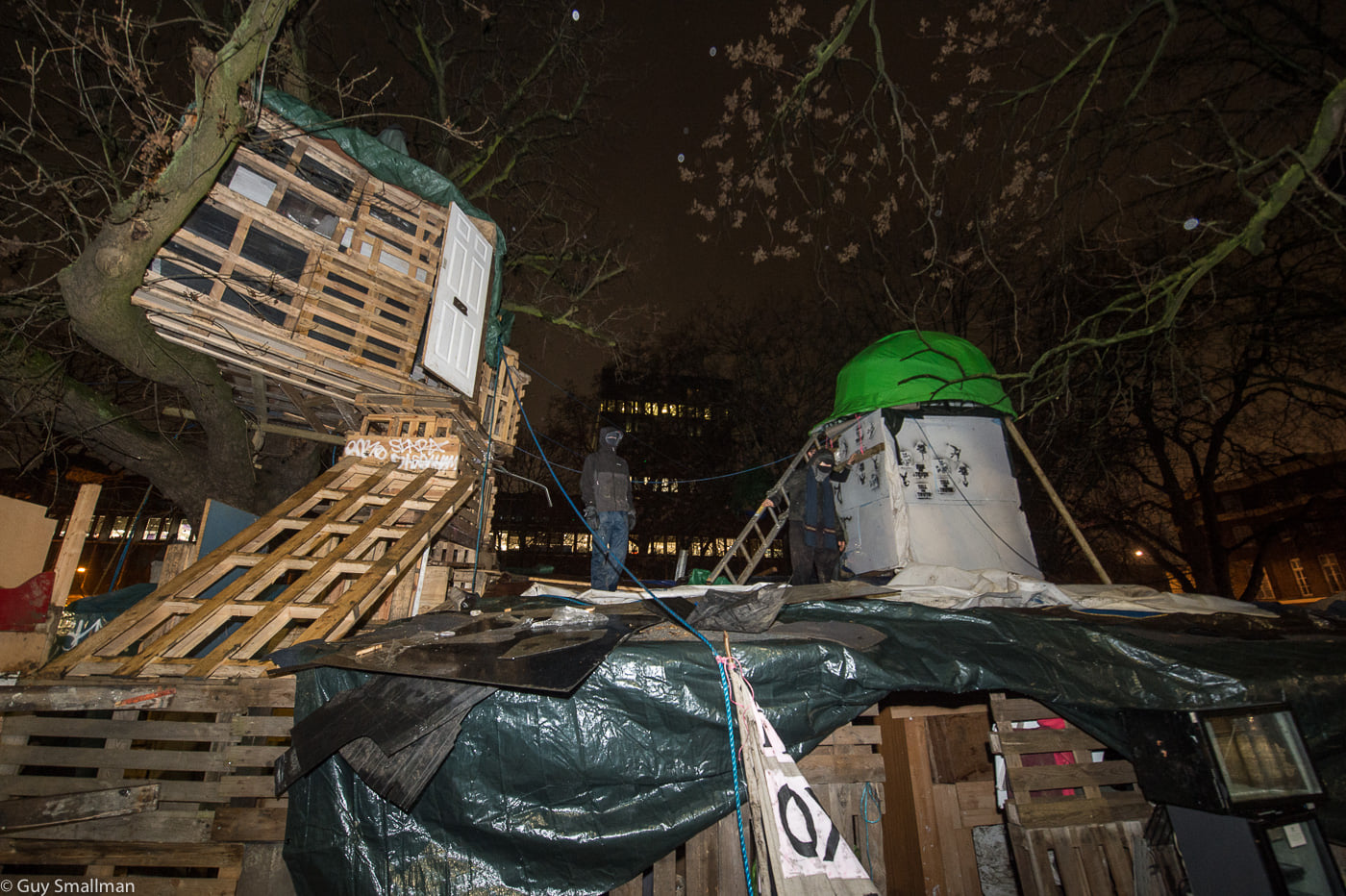 Those who were thrown out of the square immediately busied themselves with occupying cherry pickers that were being brought in for the eviction to slow down the process yet further. Euston road was also blocked for a short time when someone climbed onto a lorry.