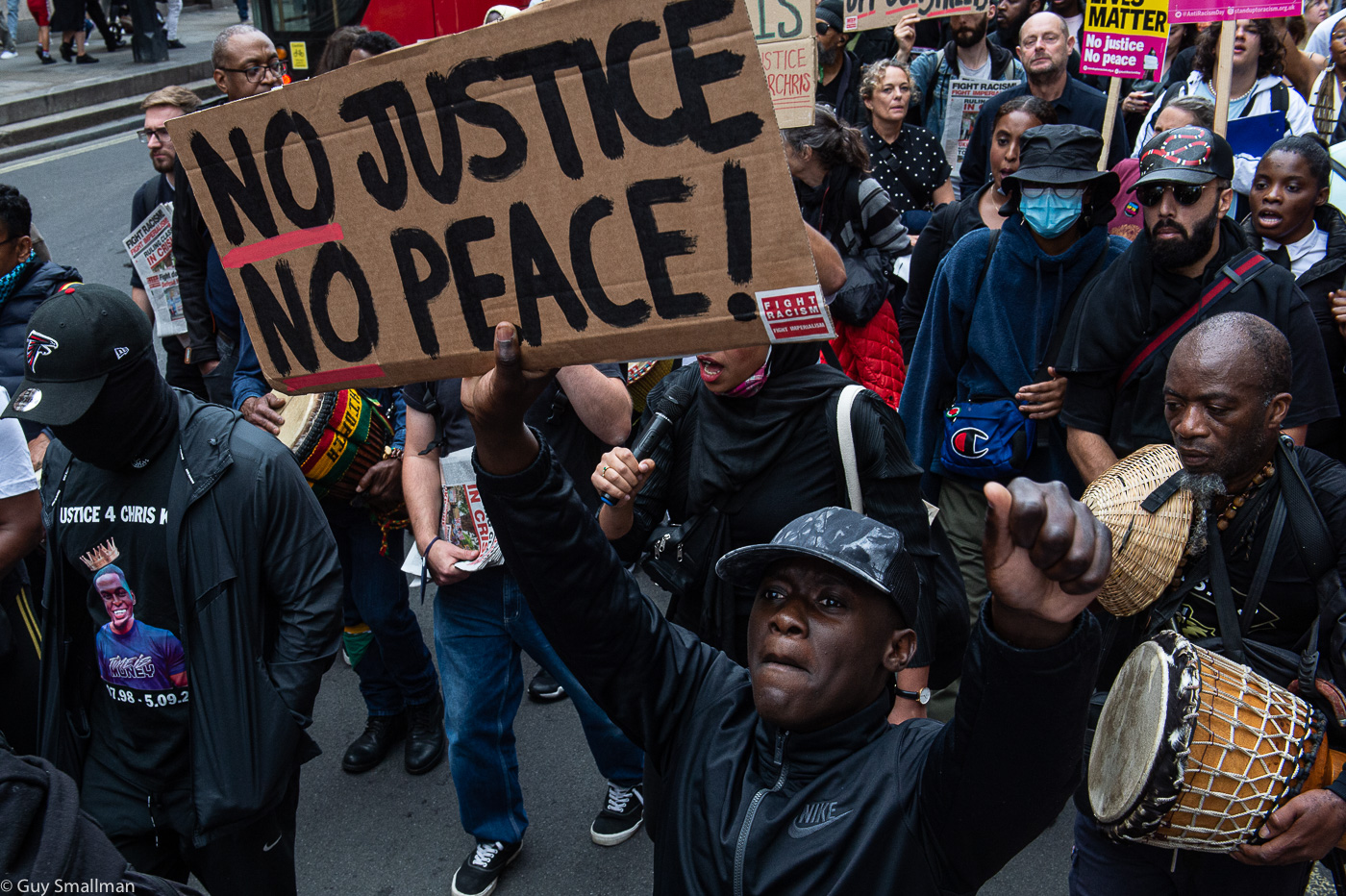 Today there was a solemn, angry march for justice for Chris Kaba. Thousands of people marched from a fenced off Parliament Square following Kaba’s close friends and family, eventually gathering outside Scotland Yard.
